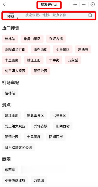 ❇️阳朔公园/阳朔西街·寄存点 ⏰08:00~23:59 阳朔公园约380米,阳朔西街580米 ❇️靖江王城/东西巷·寄存点 ⏰09:00~19:00 距靖江王城约500米,东西巷约500米 ❇️十里画廊·寄存点 ⏰07:00~23:59 十里画廊北入口约140米 ❇️刘三姐大观园·寄存点 ⏰09:00~23:00 刘三姐大观园约300米 ❇️桂林电子科大丨花江校区·寄存点 ⏰10:00~22:00 桂林电子科技大学(花江小区)南门约200米 ❇️万象城·寄存点 ⏰10:00~22:00 距万象城约250米 -⭕️桂林还有更多寄存点可查看,全国160多个城市都有我们的寄存点!