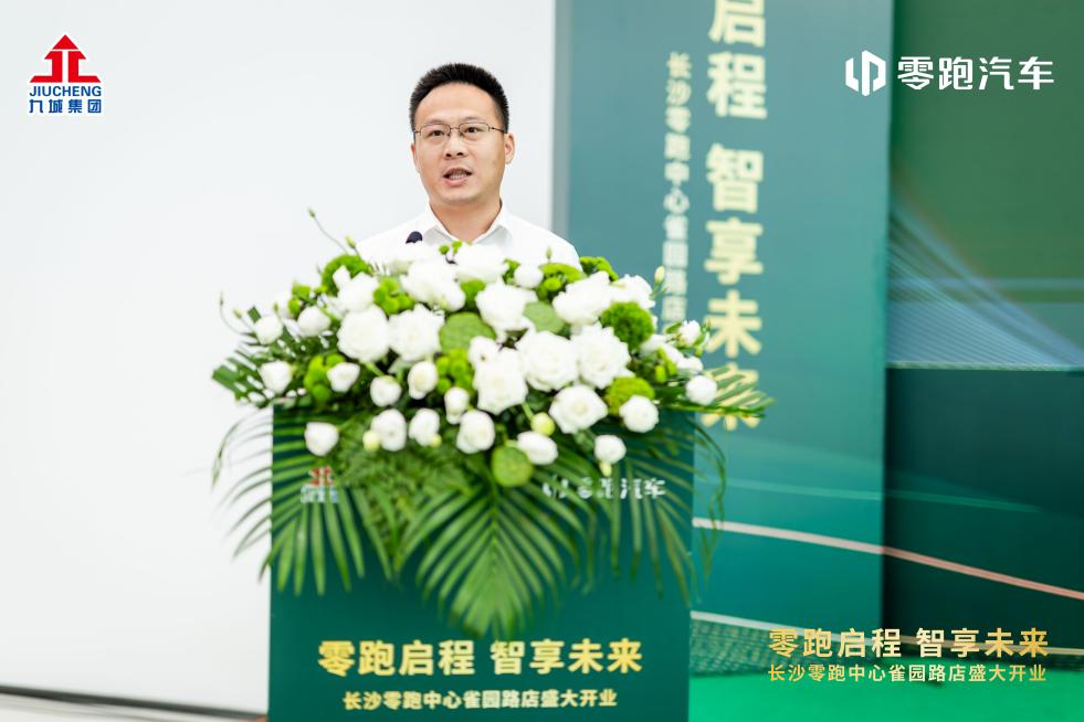 桂花坪街道办事处副主任胡波代表地方政府对门店开业表示祝贺,并指出零跑中心的落户有助于推动区域绿色出行发展与经济活力提升。