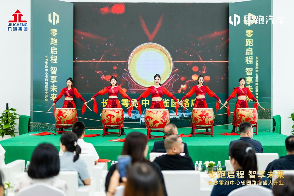 10时18分,庆典在科技感十足的开场鼓舞《智启零跑》中正式拉开帷幕,激昂的鼓点与灵动舞姿,象征着长沙雀园路店的崭新启航。
