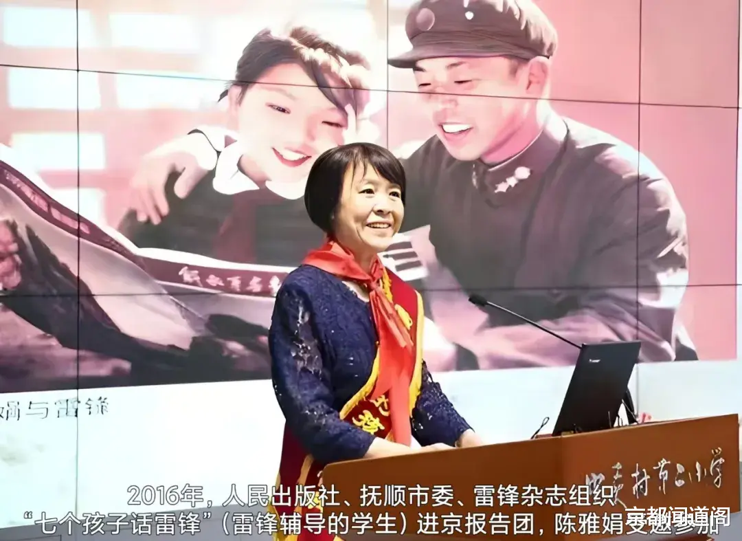 陈雅娟与共和国同龄,更与共和国同色。岁月的风雨不曾让她褪色,生活的阴晴不曾让她变色,四季的冷暖不曾让她换色。她只有一种本色:赤色。在她的心中始终有一个永恒的榜样,就是雷锋!从被雷锋辅导的学生,到一辈子弘扬雷锋精神的“代言人”,陈雅娟的人生是对雷锋精神最生动的诠释。她用一生证明:雷锋精神从来不是遥远的符号,而是能照亮每个人人生的光——只要有人愿意接过这束光,它就会永远明亮。