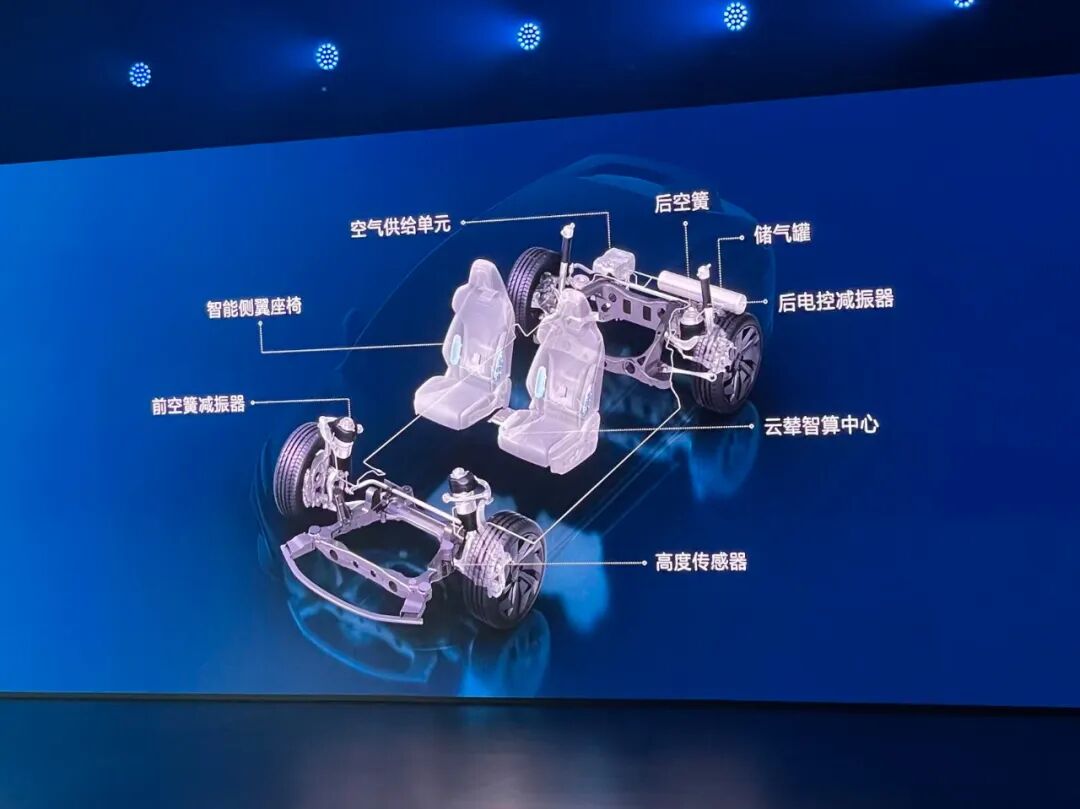 再提一级,是云辇-X,运动型液压悬架,全主动。