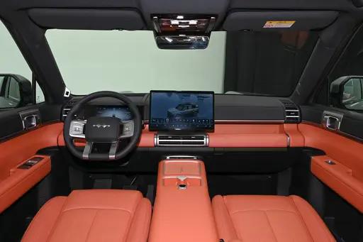 先说外观。钛7的“方盒子”造型一眼就很有个性,也很显壮实。在马路上,它和一般流线型SUV明显不同,这种差异来自方正轮廓、高大车身以及短悬长轴的设定,看上去和路虎卫士、丰田普拉多有些类似,但细节上又比较精致,没有那种纯“糙汉风”。像矩阵大灯、贯穿式灯带配主动进气格栅,不只硬派,还显得挺有科技感。整个车长接近5米、宽接近2米、轴距2米92,实际静态看车给人感觉比参数更壮观,尤其是侧面20英寸大轮圈和隐藏门把手这些现代设计,既照顾了越野氛围,也不失都市精致。值得一提的是全景天窗确实不小,家人坐进去采光很棒,长时间车内不觉得闷;行李架最大承重80kg,夏天露营带帐篷、自行车都能装,不担心不够用。包括尾部外挂“小书包”储物、可选配色的金属漆工艺,整体回头率很高,尤其山水绿色在阳光下显得活力有个性。本地不少热衷自驾的朋友路过都说,钛7造型让他们有换车的冲动。