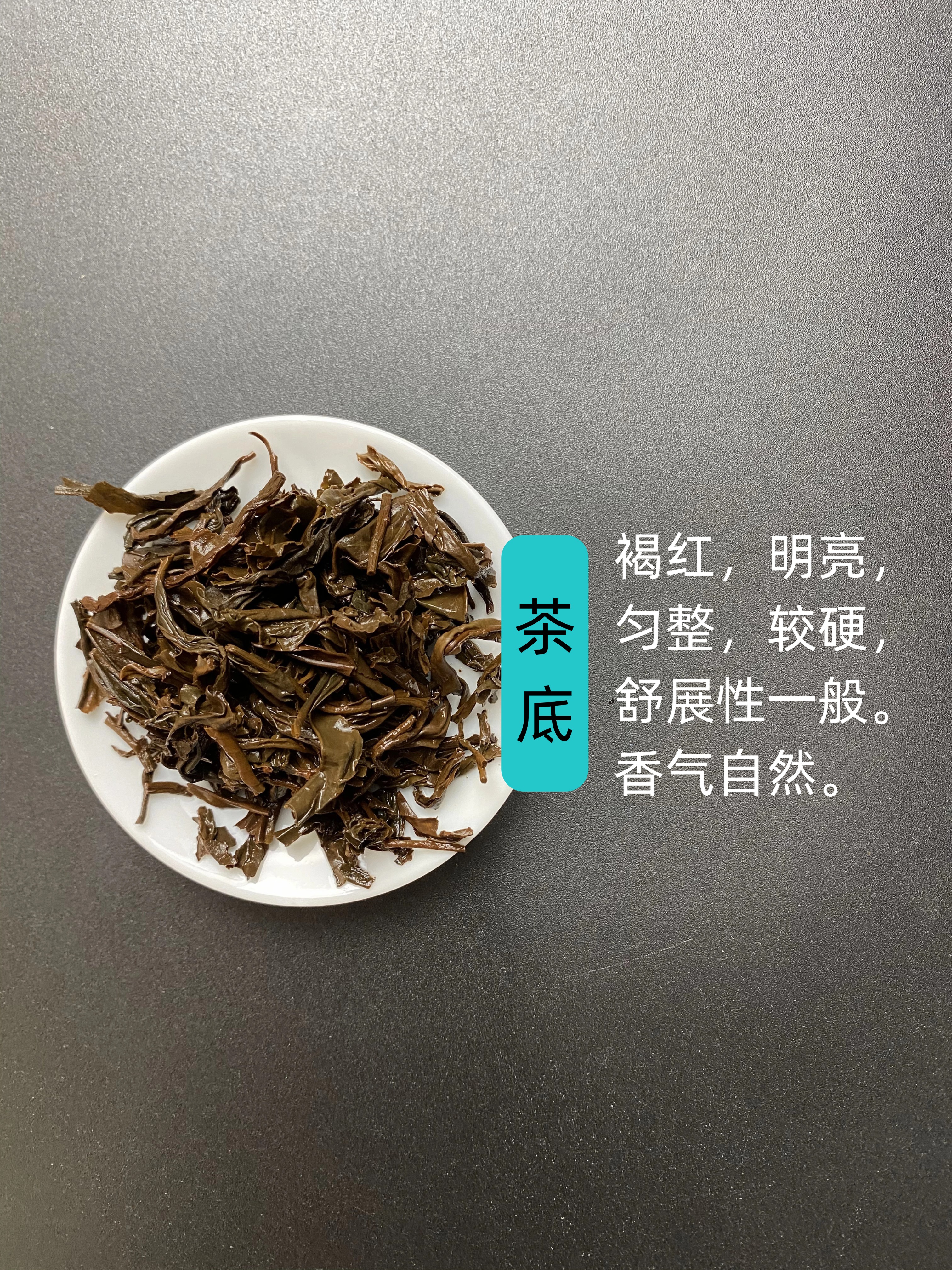 叶底,褐红,明亮,匀整,较硬,舒展性一般。香气自然。