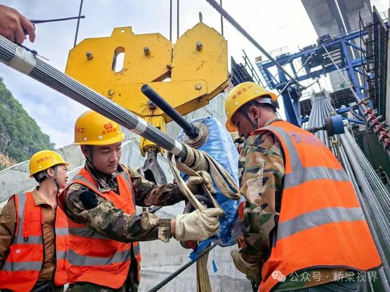 花江峡谷大桥首条智慧缆索成功架设