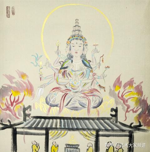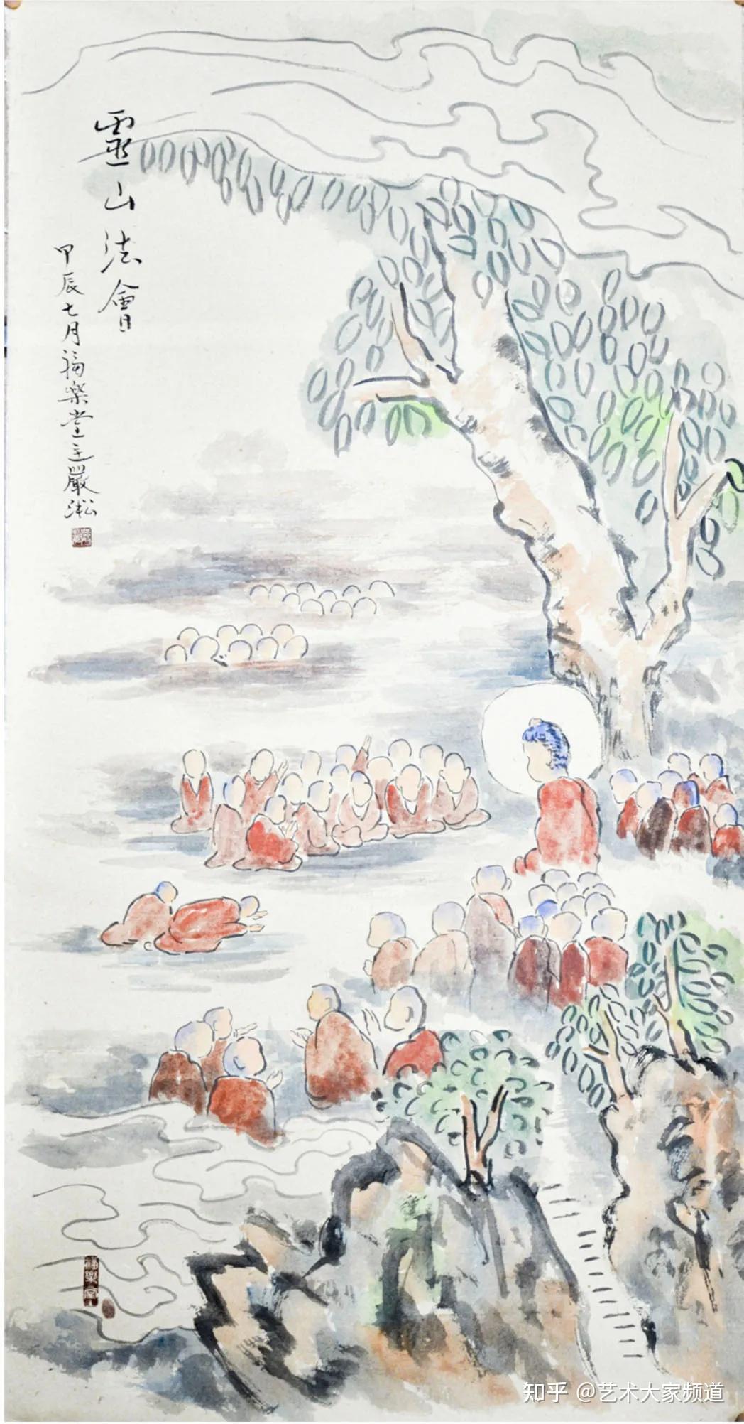 严淞的禅意,本质是“慢”的修行。在数字时代追求速成的潮流中,他坚持一笔一墨的锤炼:人物开相需百日静观,山水布局必四季参悟。这种“匠人精神”与“禅者心境”的结合,使作品兼具宗教的庄严与艺术的纯粹。例如《千手观音》中,每一只手的姿态皆经《造像量度经》考据,而整体却如光晕般弥散,恰似“一即一切”的华严境界。