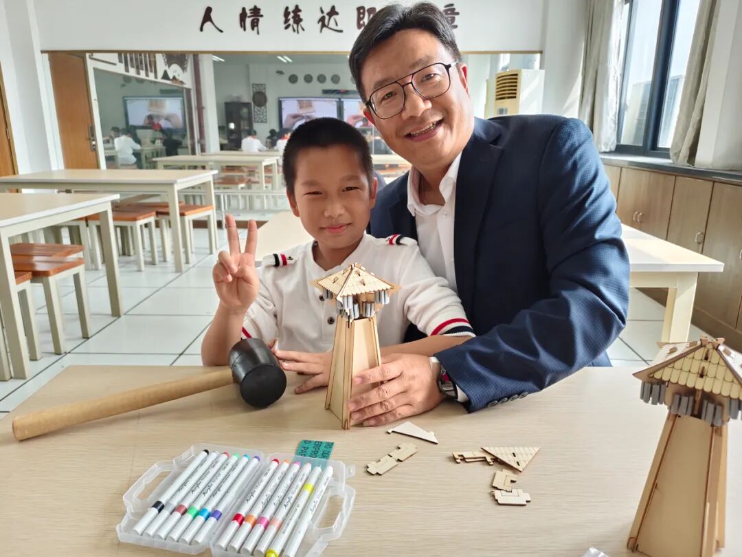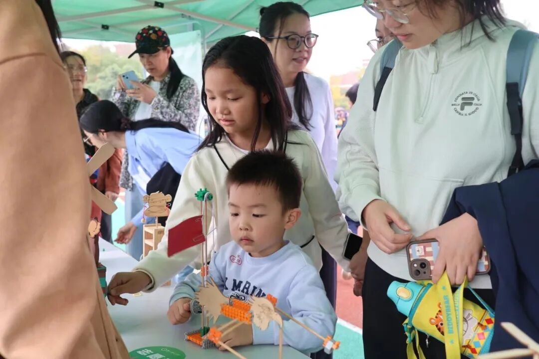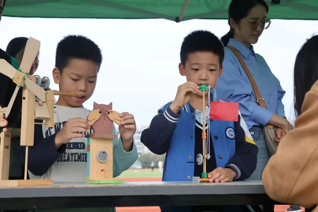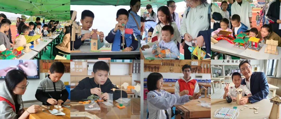 在现场观摩区,直升机、拨浪鼓、大风车、猫头鹰等会动好玩的“鲁班木创”作品,廊桥、虹桥、垂花门、爱晚亭、杭州雷峰塔、山西应县木塔等古色古香的“建造大师”作品,让众多学生和家长在驻足欣赏中感受“造创鲁班”课程对于中华优秀传统文化的传承与发展。