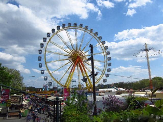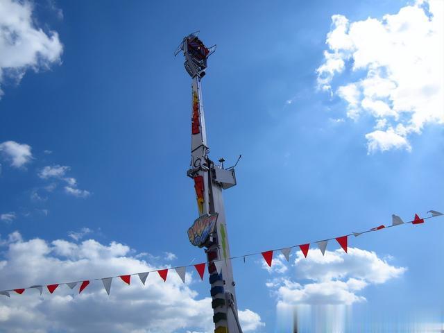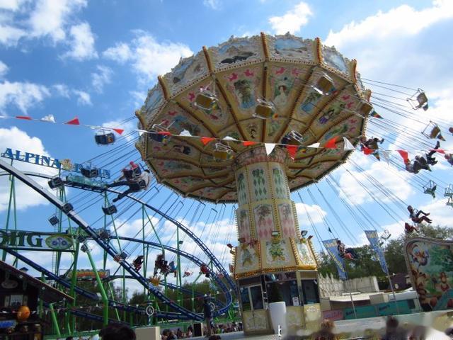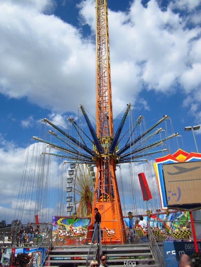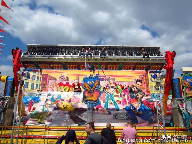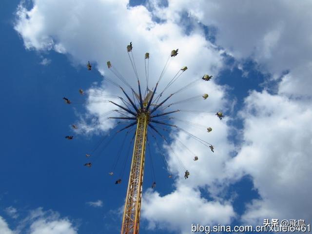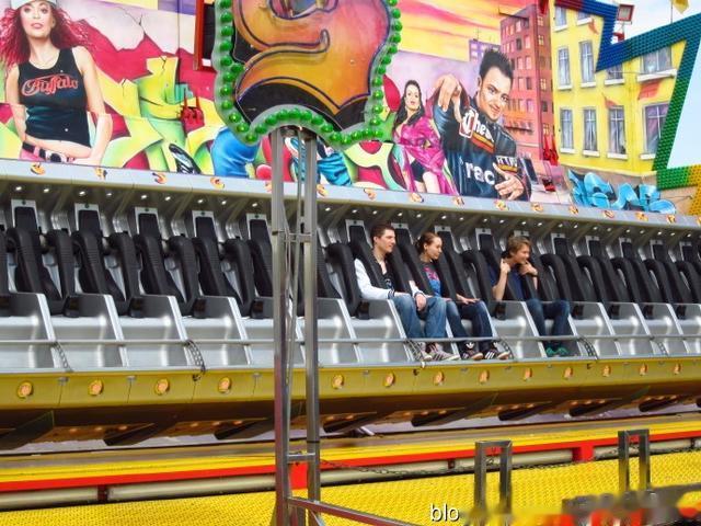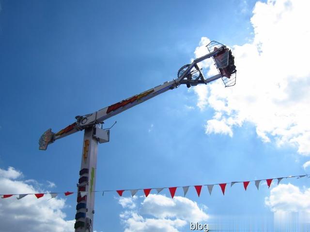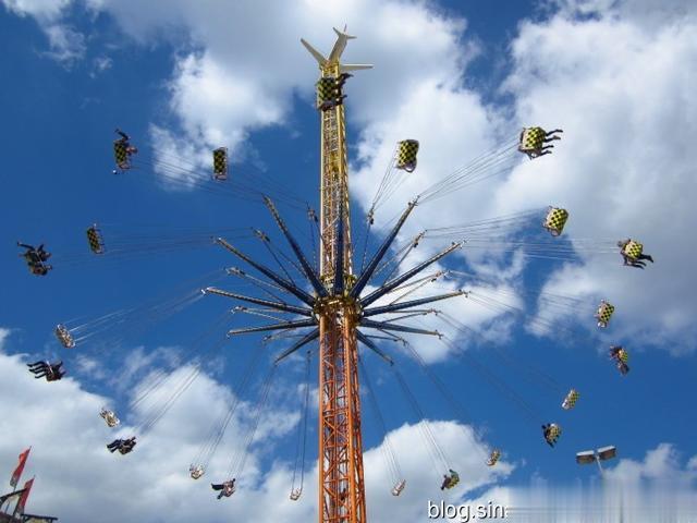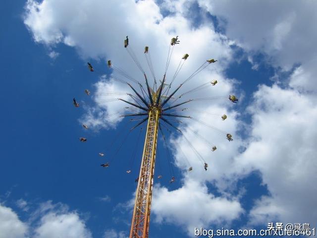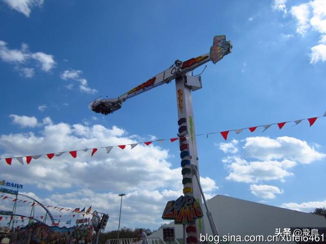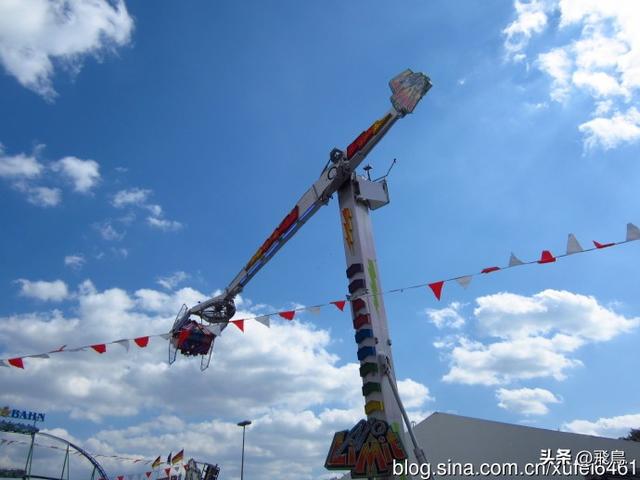 (32)德国人做生意实实在在。转到最高点后下落到中间,再次加速向上,重新旋转登上50米高空。估计,在空中很多游客都希望早点落地,而不愿意再上一次50米高空。