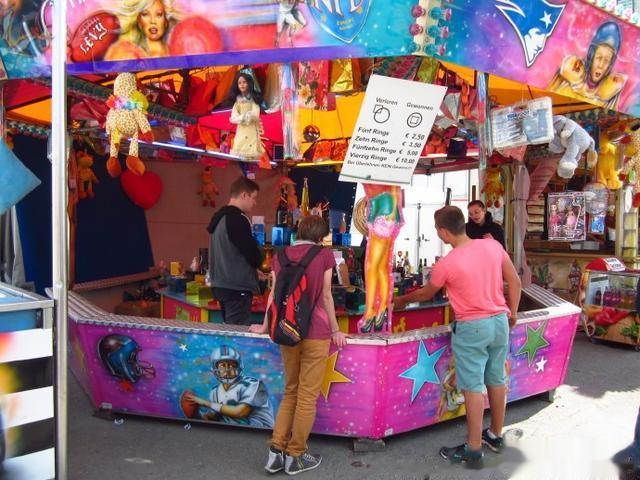 (16)欧洲也有套圈赢奖品的。看了一会,几乎无人套中。
