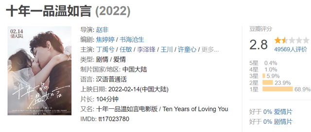 从520的票房历史可以看出,爱情片档期不确定性极强,很大程度由影片本身决定。去年《十年一品温如言》《好想去你的世界爱你》等一众低分爱情片,已经让多数观众对这个类型十分抵触,很多爱情片影迷都会先观望口碑,再选择是否买票。