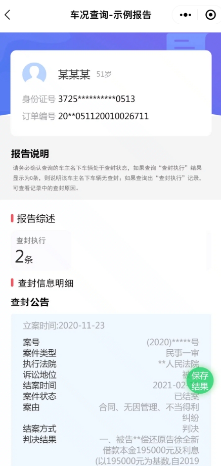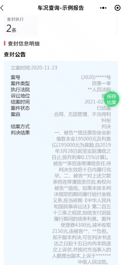 查封公告中详细说明车辆立案时间、案件类型、执行法院、诉讼地位、结案时间、案件状态、案由、结案方式、判决结果等查封信息明细。