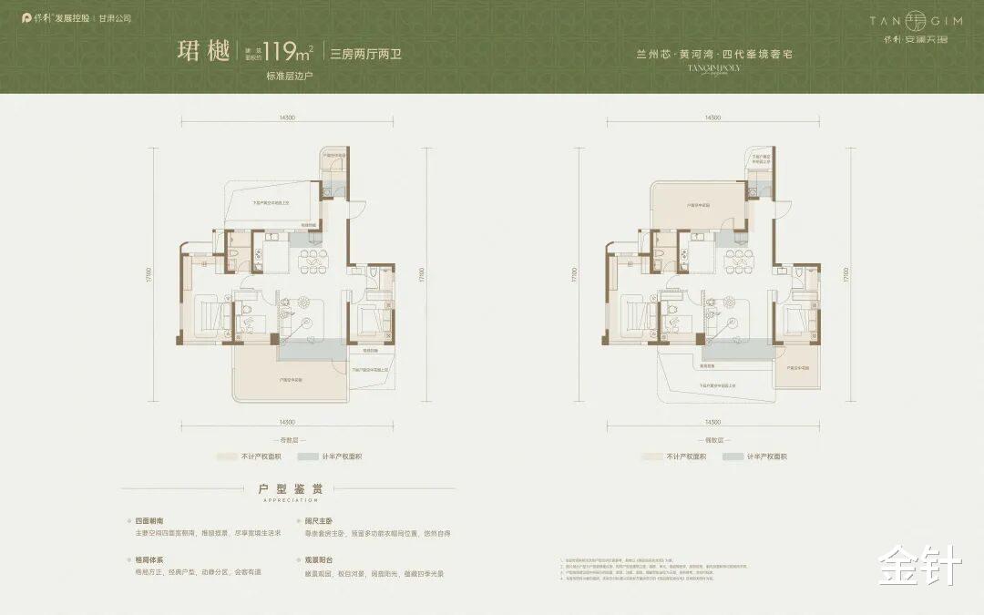 看完天珺的户型,我觉得现在兰州市场产品迭代太快了,内配增加了不说,它连最小面积119平的户型都做到了四开间朝南,主卧270度的采光面,这种产品在兰州市场以前从来没有见过。