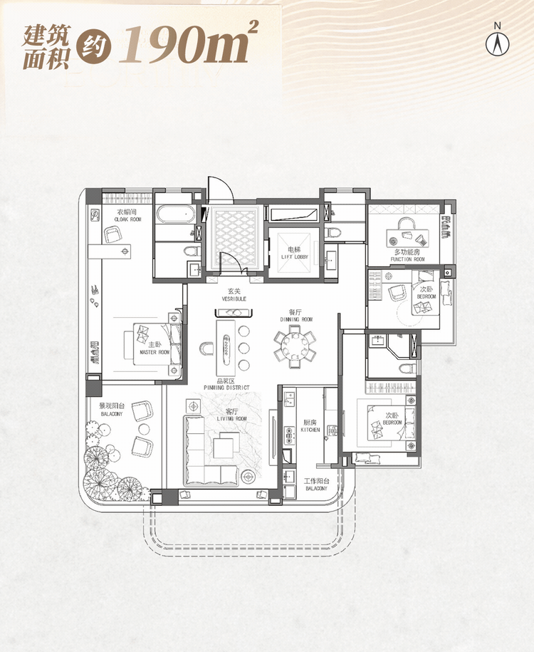 户型皆为纯改善四房,LDK一体化,双套房,IMAX级宽景主卧,三代同堂,既有独立的私密空间,又能随时共享天伦。