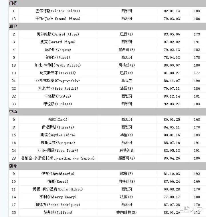 我们可以先看一下2009-2010赛季的巴萨阵容大名单。对巴萨球迷来讲,这些人已经很熟悉了,都可以倒背如流。