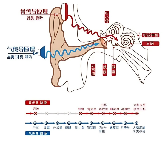 气传导耳机利用空气作为声音传播的介质,通常应用波束成形技术来精确导向声音至耳朵内部,让我们能够听到。这种方法与骨传导技术相区别,不会在耳朵区域产生振动感,从而减轻了可能的不适感受。【骨传导】骨传导耳机采取了一种非传统的声音传播方式,即通过骨头振动来传输音频信息。它将音频信号转化成不同振动频率,这些振动借助头骨和内耳骨骼直达听觉神经系统,实现声音的接收。