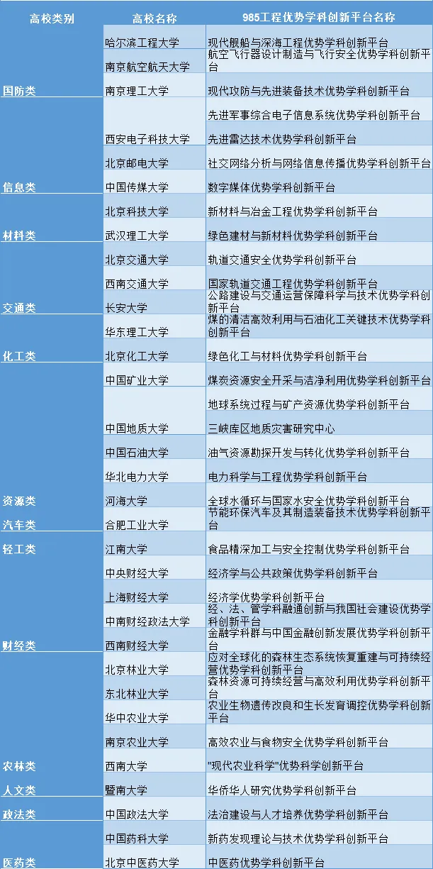 985平台校就是“985工程优势学科创新平台”,简称“985平台”。
