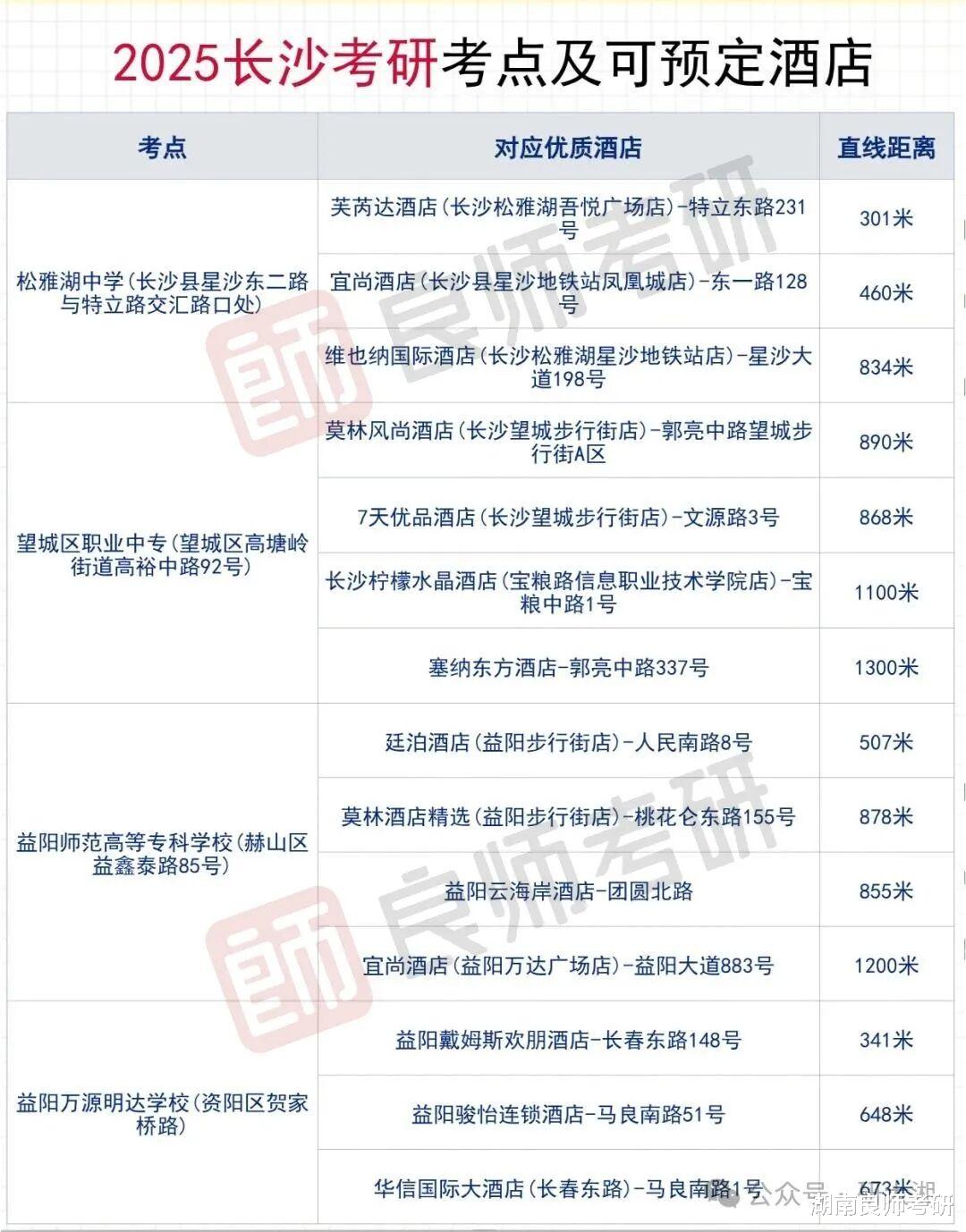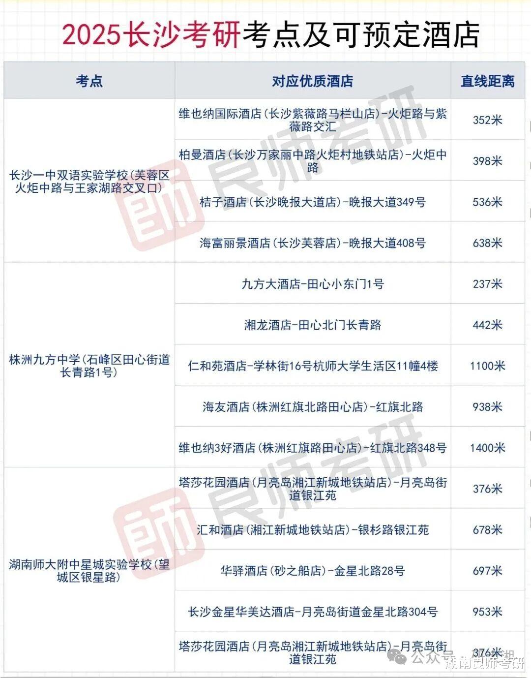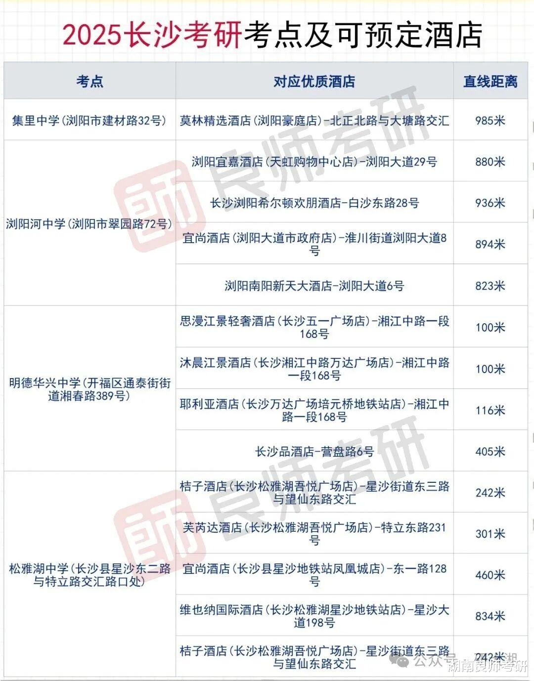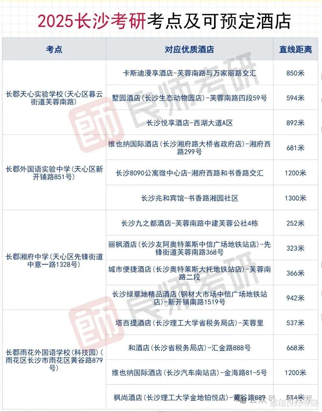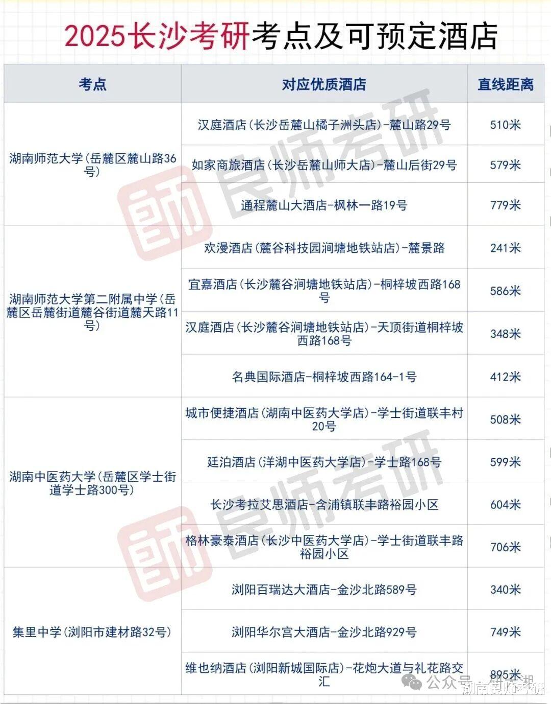 需要注意的,目前考点都是未知的,我们是参考去年的数据进行整理,周边酒店、交通可能会有部分出入。以最新的信息为准哦~
