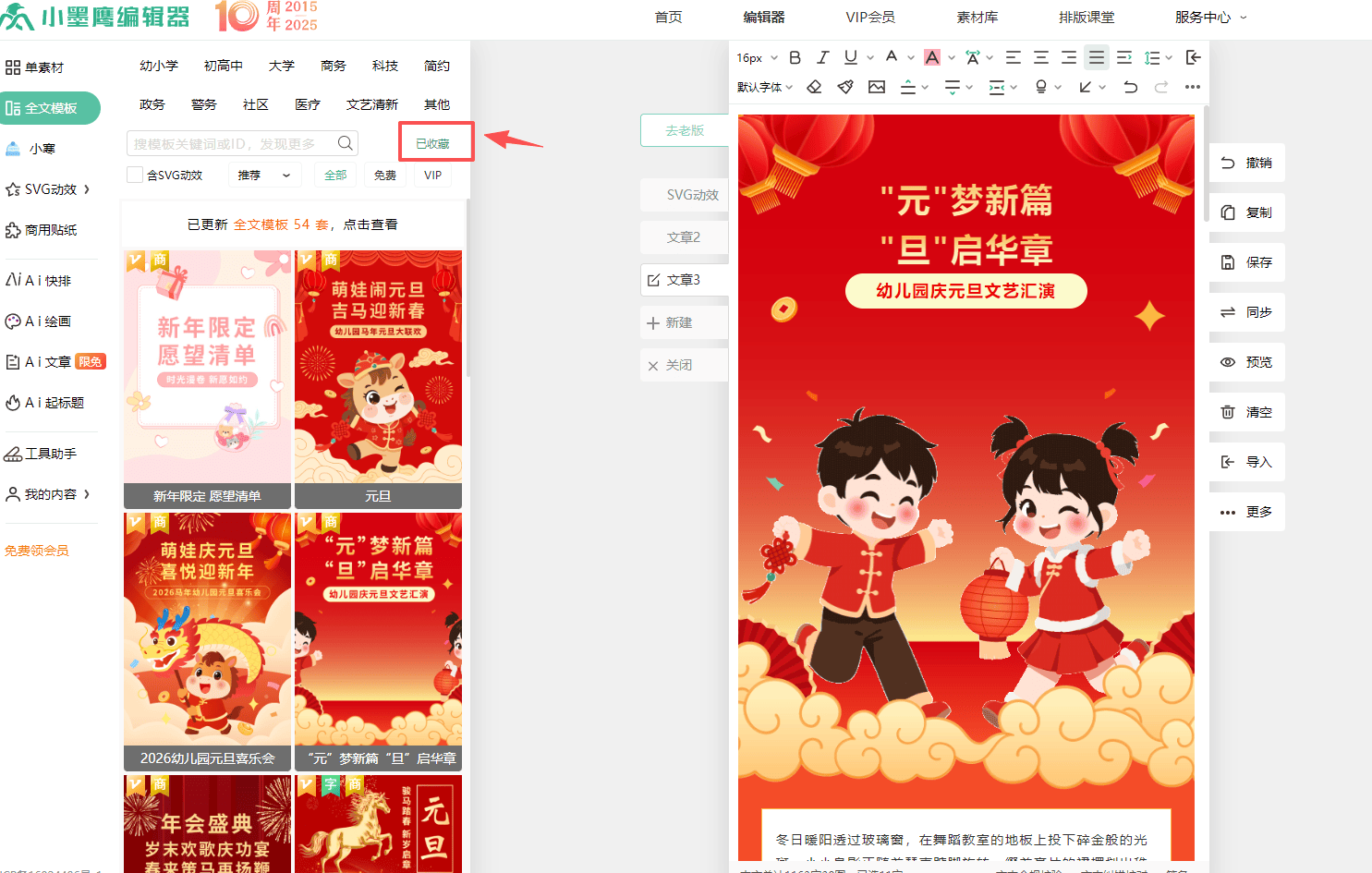 关键一步:存为“资产”:排版完美后,不要只保存文章。点击右上角的【保存全文模板】,给它起个名字,比如“我司-正式通知标准版”。