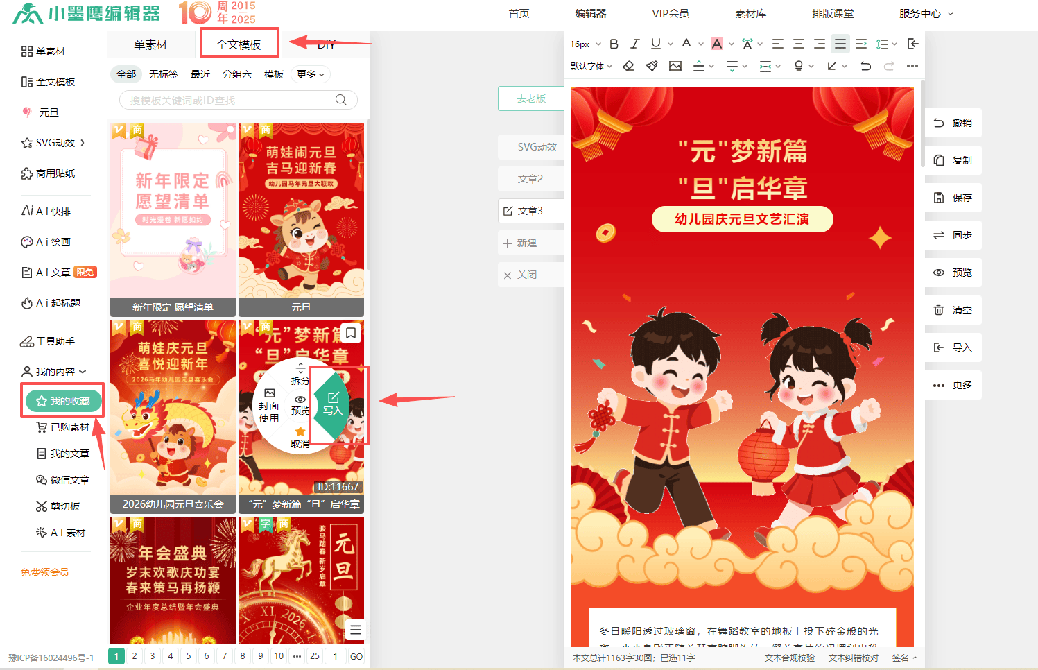 我的核心武器是小墨鹰编辑器的「保存全文模板」功能。具体操作: