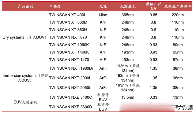 2)缩短曝光波长:由于晶体管越做越小,元件线路越来越密集,光刻机需要达到更高的分辨率,因此必须要寻找波长越来越短的光源。