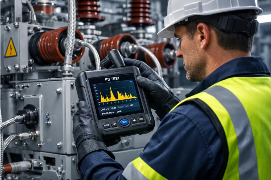 使用场景:运维人员手持“哪吒”测试仪,通过其集成的UHF和TEV传感器,对开关柜的母线室、断路器室和电缆终端室进行快速扫描。设备屏幕实时显示局放信号的波形和强度,并通过耳机提供声音指示。