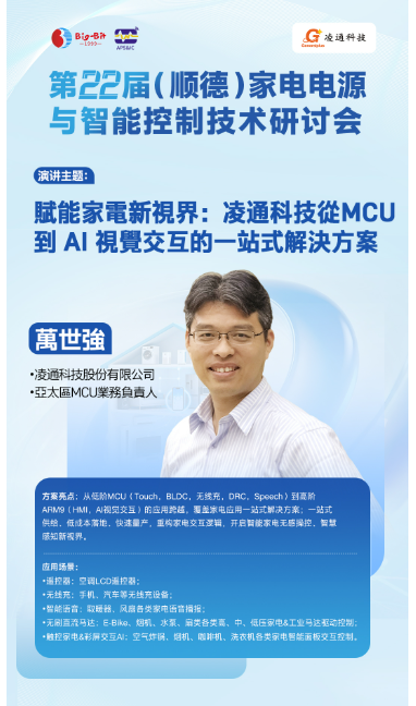 随着家电智能化浪潮席卷全球,家电半导体芯片的高集成度、高能效设计与AI交互能力正重塑产业竞争格局。为应对家电市场对智能控制与变频驱动家电技术的迫切需求,由Big-Bit商务网主办、《半导体器件应用》杂志承办的第22届(顺德)家电电源与智能控制技术研讨会将于2026年4月24日在广东顺德隆重召开。