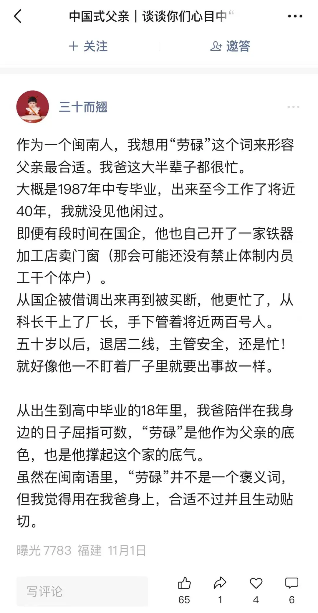 前几天,我在微信问一问上,回答了“中国式父亲|谈谈你们心中‘父亲’是一个什么样形象”这个问题。