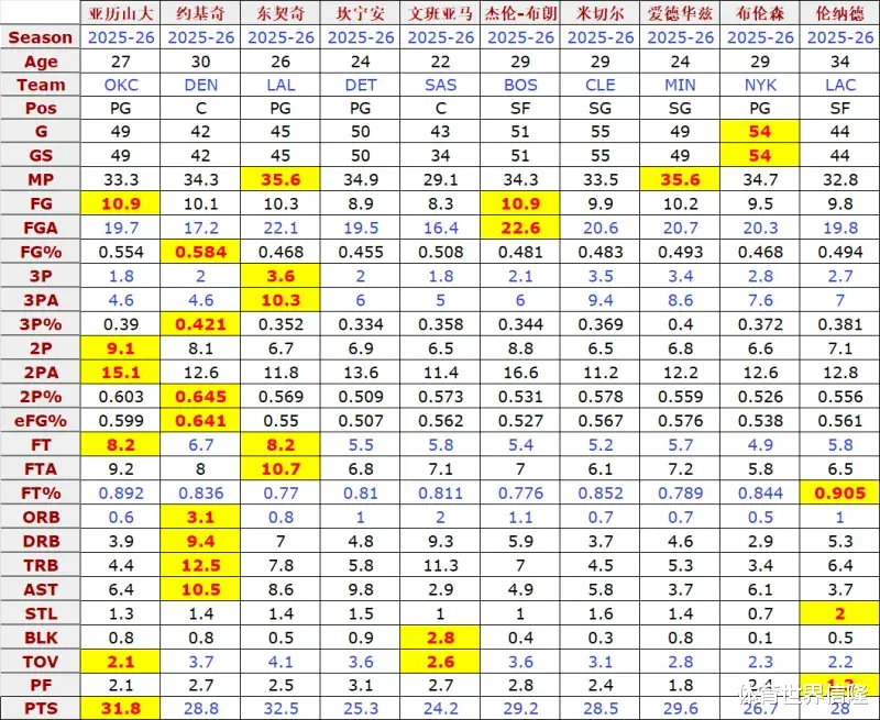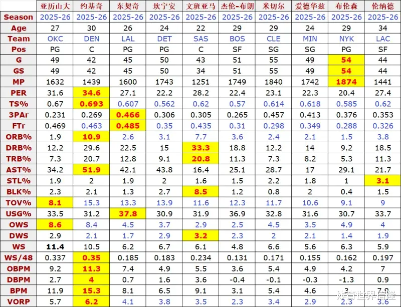 单看基础数据和高阶数据,约基奇是领先于其他人的。