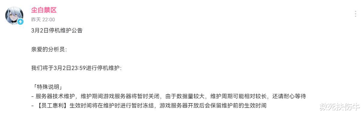 但尘白禁区已经视野暴露了,这种情况正常应该是紧急维护给角色加布料,以求游戏能正常上线,结果尘白禁区直接搞了个停服,也是神奇。
