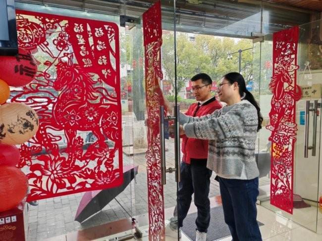 店门口,一幅近一米高的剪纸福马造型格外吸睛,线条细腻流畅,寓意着马年吉祥、福气临门,引得过往行人,不自觉停下脚步,盯着剪纸端详,不少人还拿出手机拍照,称赞“这剪纸真精致,有年味儿”。