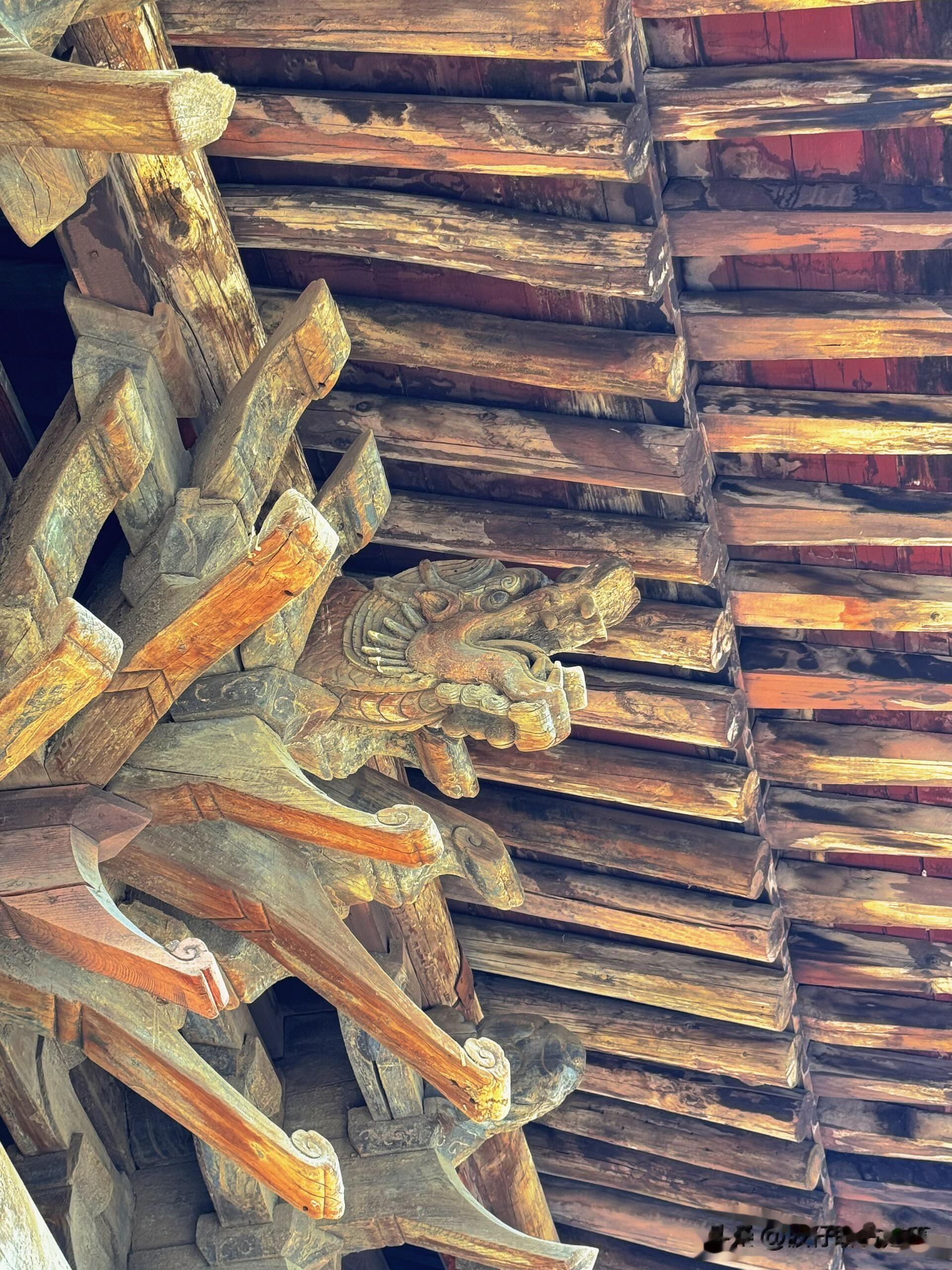 站在殿内,光影透过门窗缝隙洒入,在藻井的斗拱与垂柱上流动,仿佛时光在缓慢倒流。想象当年,匠人在搭建藻井时,需要先在地面放样,将每一个构件的尺寸、角度都精确计算,然后逐一加工、编号、试拼,确认无误后再登高安装。没有计算机辅助设计,没有精密的测量仪器,仅凭墨斗、曲尺与经验,便能完成如此复杂的结构,这不仅是技艺的展现,更是匠心的坚守。那些被岁月磨平的榫卯接口,那些木材自然形成的纹理,都是匠人精神的最好见证——他们或许没有留下姓名,却用毕生所学,为后人留下了这样一件跨越百年的艺术瑰宝。