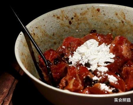 2、继续加入食用油、生粉,搅拌一下,然后腌制大概20分钟时间,尽量要吧多腌制一下让排骨更加入味。