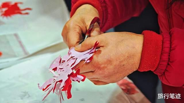 第二天直奔岐山。徐引娣剪纸馆里,我们见到了徐老师本人。她站在长桌前,手里一把剪刀、一张红纸折了好多层。剪刀与红纸翻来覆去后就变出很多只“马上封侯”……