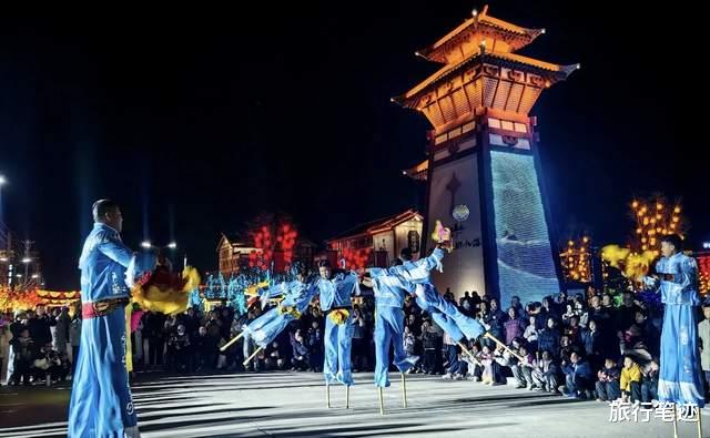 白天,高台舞狮如天外飞仙,锣鼓喧天中,《风起三国》《烽火马战》实景上演。金戈铁马卷起千堆雪,一步一景都是古风大片。高空杂技惊心动魄,NPC互动逗趣闯关,百场演艺日夜不停歇。孩子们在老手艺摊前挪不动步——捏面人、画糖画、做泥塑,每一样都想亲手试试。