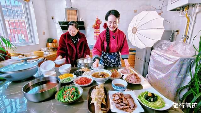 中午走进一户农家院子,红灯笼高高挂,喜庆春联贴门头。院子里,一家人正忙着准备团圆饭。大铁锅里臊子肉咕嘟咕嘟冒着香气,另一口锅里擀面条正在翻滚。