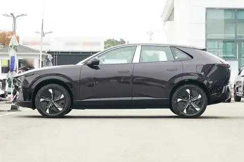 从外观来看,EZ-60延续了马自达标志性的魂动设计语言,并针对电动化平台进行了适应性优化。车身线条流畅,比例协调,整体姿态兼具动感与稳重。前脸采用盾形封闭格栅,与LED灯组融合自然,视觉上简洁且富有科技感。车侧通过A柱至D柱的连续弓形线条营造出向前俯冲的动势,配合悬浮式车顶与C柱黑色饰条,强化了整车的轻盈感。尾部造型灵感源于人体曲线,避免了传统SUV的方正呆板,更显灵动。