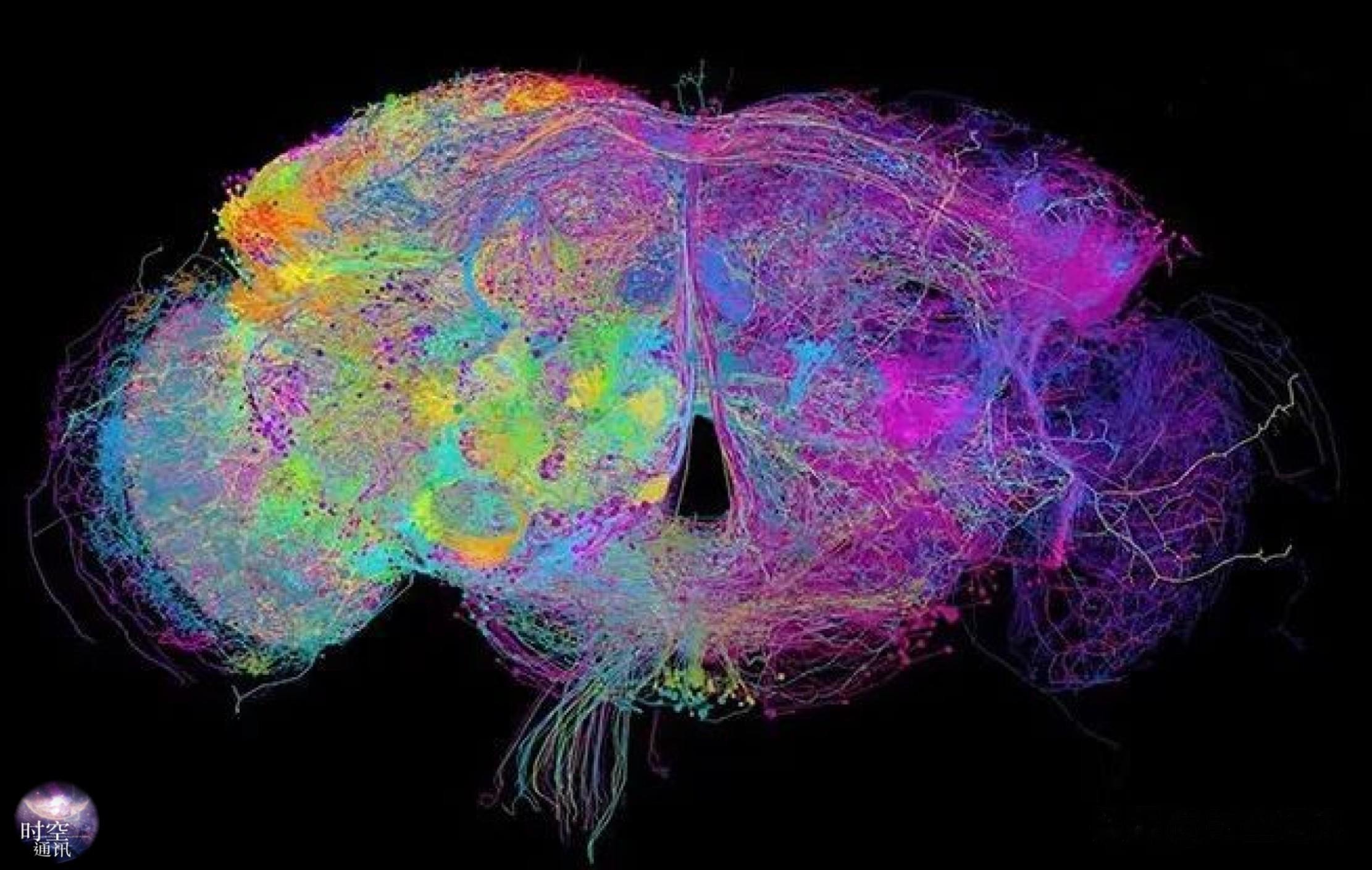 真实果蝇的大脑只有罂粟籽大小,此次研究精准测绘出约13.9万个神经元和超过5000万个突触连接,每一个神经元的位置,每一条神经通路的走向,每一个突触的连接强度与递质类型,都被完整记录。