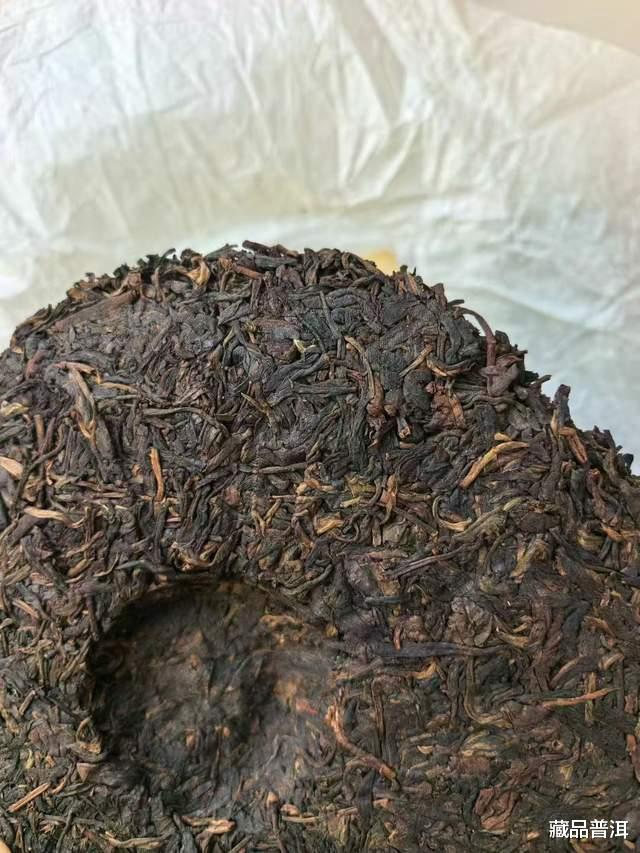 有经验的老茶客会通过饼面拼配细节来辨别茶品。虽然都是7542配方,以4级综合茶料为主,但不同茶饼的具体拼配用料还是有区别的。