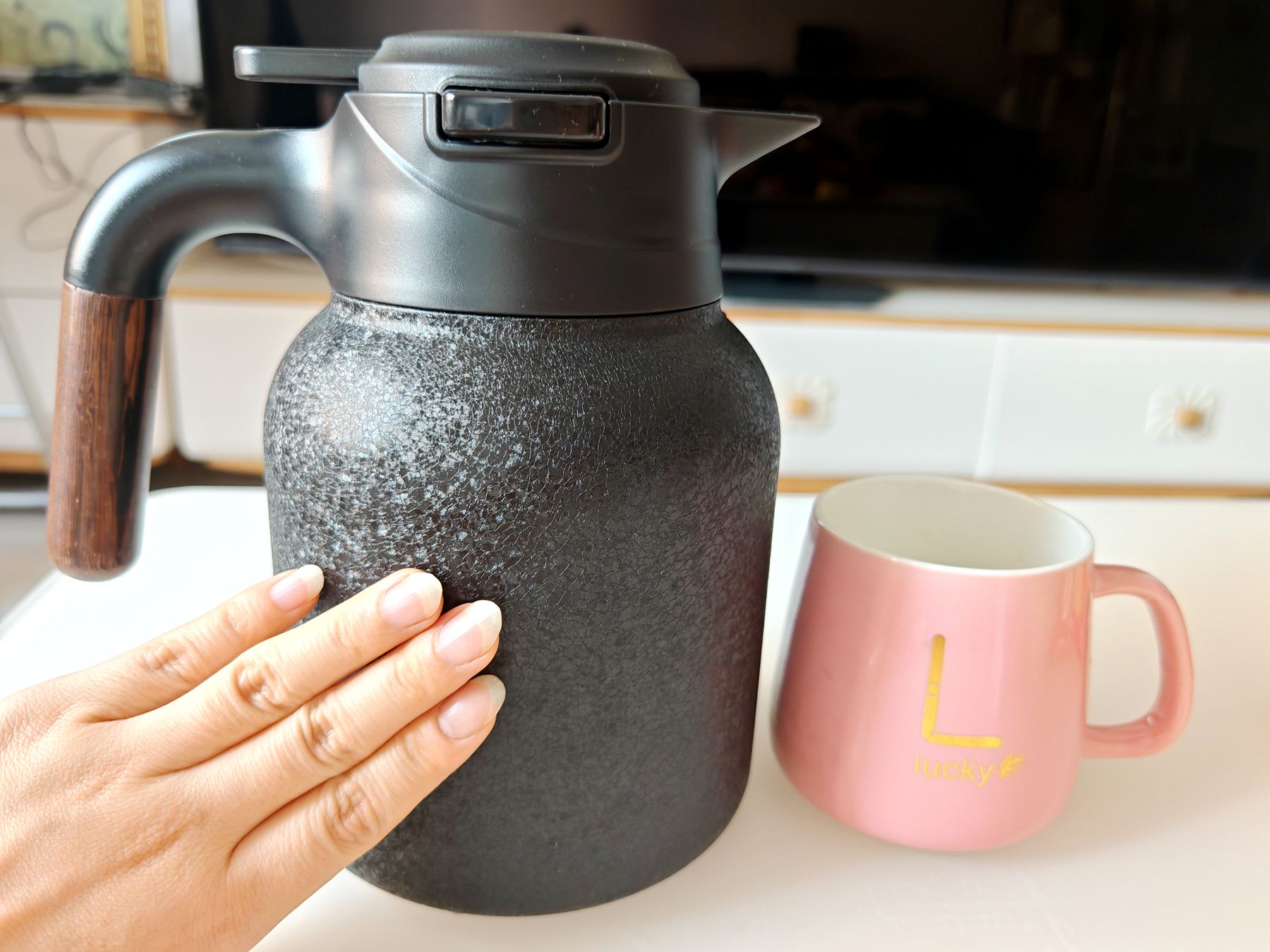 因为家里有小朋友我经常担心这款保温壶会烫到宝宝,所以我在保温壶里刚烧开约100度的热水,用手去摸保温壶的温度,惊讶的发现一点都不烫手。