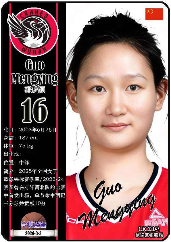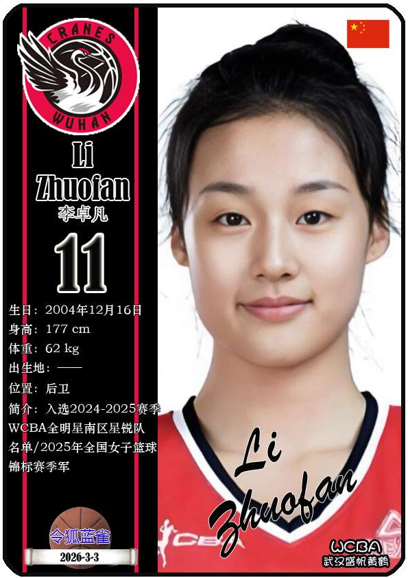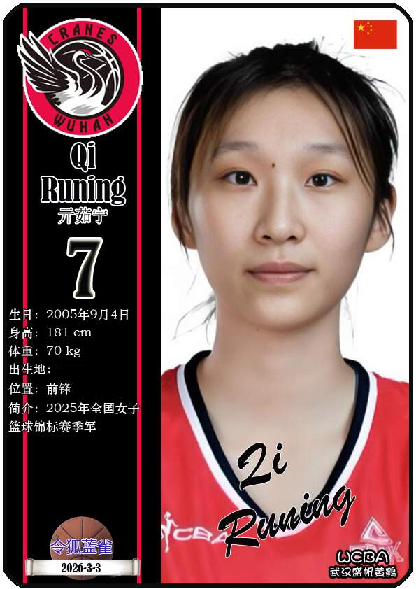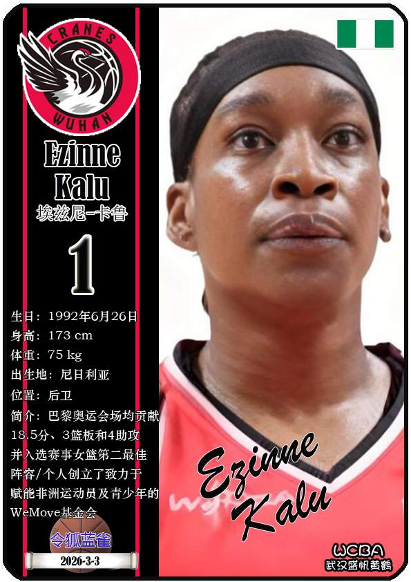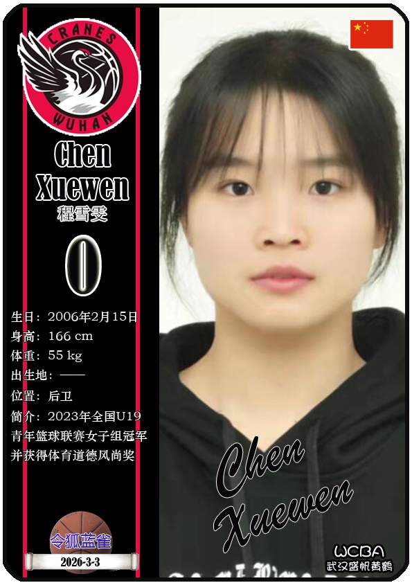 武汉盛帆黄鹤女篮成立于2018年,距今已有8年历史。目前球队主教练是李建新,队内拥有球员程雪雯、埃兹尼-卡鲁、尚迪等。本期盘点目前截至2026年3月3日WCBA武汉盛帆黄鹤女篮的17名球员(按球衣号码排序):