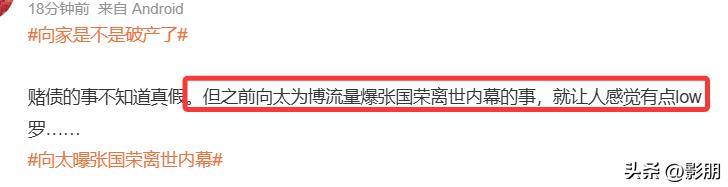 也是在这时候开始,就有吃瓜网友觉得,向太为了博流量曝张国荣离世内幕的事情不好。