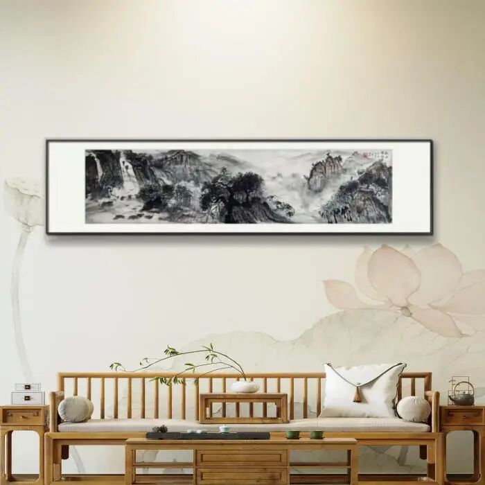 构图的匠心独运,是凌培红山水画的另一鲜明特色。他打破传统山水构图的固有范式,将高远、平远等经典构图法则灵活运用,甚至大胆突破,赋予作品极强的视觉张力。在云岭巍峨中,他以高远之法构景,峰峦层层叠叠、直插云霄,线条硬朗而富有气势,引导观者视线向上延伸,仿佛能感受到“危峰高入云”的雄浑壮阔;而在江南水乡中,又以平远之法铺陈画面,水面开阔、岸柳低垂,茅舍点缀其间,营造出“潮平两岸阔”的悠远意境。这种构图的变化并非随意为之,而是与作品的意境表达高度契合,险峻山势的构图传递出天地正气,平缓景致的铺陈则流露出水墨温情。