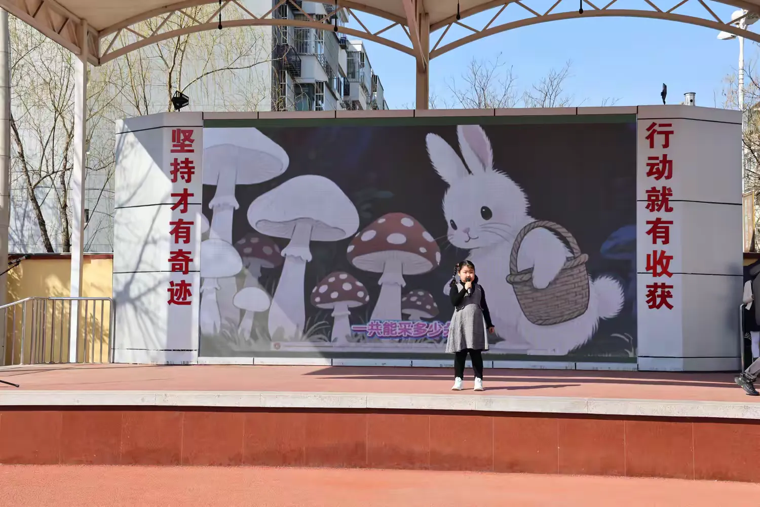 低年级小朋友包晨昕讲述《小兔子的蘑菇奇遇》,把同学们带进有趣的绘本故事中,在奇妙的绘本世界里,数学是有趣的冒险、温暖的故事。