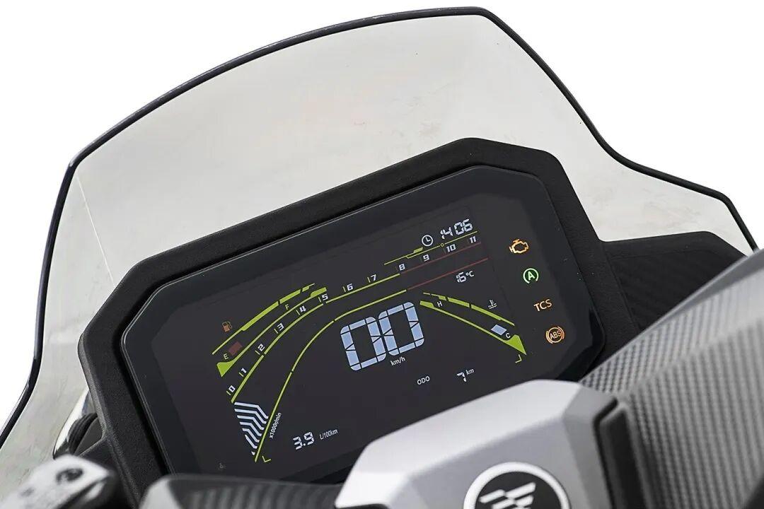 配置方面SR150R不能算出色,但该有的实用、安全配置一样不少,所以配置表现依旧在线。首先它搭载双透镜大灯,80000cd的超高亮度基本没有改装的必要,不管是夜路哪怕摩旅都无需担心。其次全彩液晶仪表支持无极第三代车机互联功能,Type-A+C双USB快充接口也能提供方便的充电需求。另外像是无钥匙启动、边撑熄火、手动驻车等都有搭载。