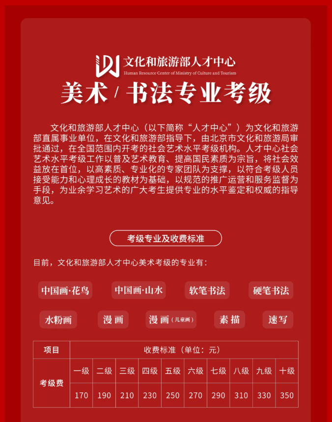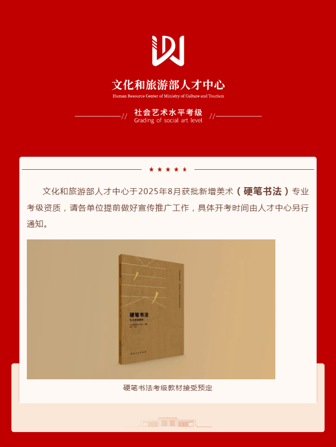 文化和旅游部人才中心新增『硬笔书法』专业考级资质