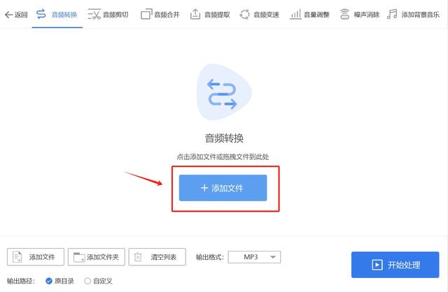 步骤3:m4a文件导入完成后,请确认下方的输出格式为MP3,确认无误后点击右下角的开始处理按钮就可以启动m4a转MP3程序。