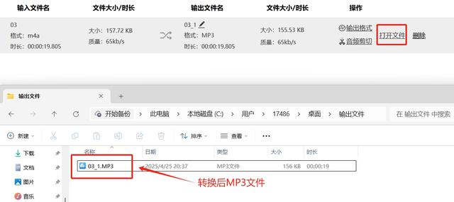 步骤5:软件完成转换后,大家需要将软件的输出目录打开,打开输出目录后就可以找到转换好的MP3文件。