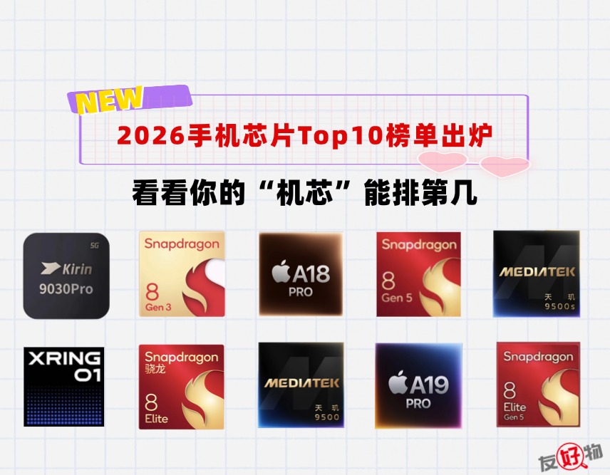 以上就是友友盘点的2026年全球手机处理器Top10榜单。从麒麟9030Pro的国产崛起,到骁龙8 Elite Gen5的性能巅峰,每一款芯片都有其独特的魅力和优势。对于咱们消费者来说,选择哪款芯片的手机,不仅要看性能排名,还要根据自己的实际需求、预算和使用习惯来决定。