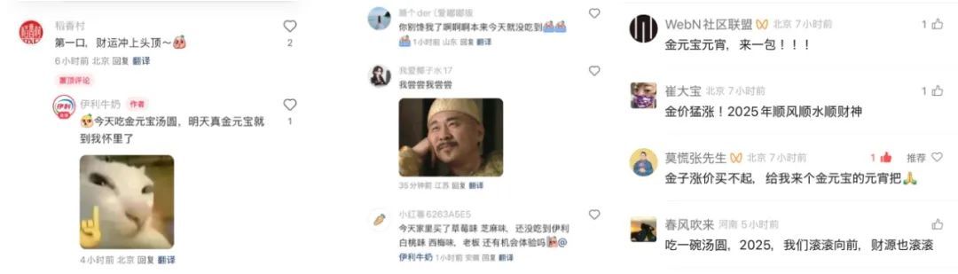 在元宵节,“吃汤圆”是一个必不可少的环节;而汤圆产品的变化,也折射出消费趋势的流行变迁。现如今,以Z世代为代表的年轻人成为消费主力,他们对产品的需求呈现出新的变化:一方面,这届年轻人重视“品质消费”和“健康元素”,在意更高的营养价值和更多元化的美妙口感;另一方面,他们追求更深层次的“情绪价值”,尤其新年伊始的这个特殊节点,期待更多的好运和财运来临,并将对未来的美好期许投射到产品身上。有鉴于此,在积极践行“伊利即品质”的同时,伊利敏锐地洞察消费风向和情绪痛点,以人们对好运、财运的渴求心理为突破口,通过推出创意汤圆新品将情绪价值拉满,引发更多消费者的情感共鸣。