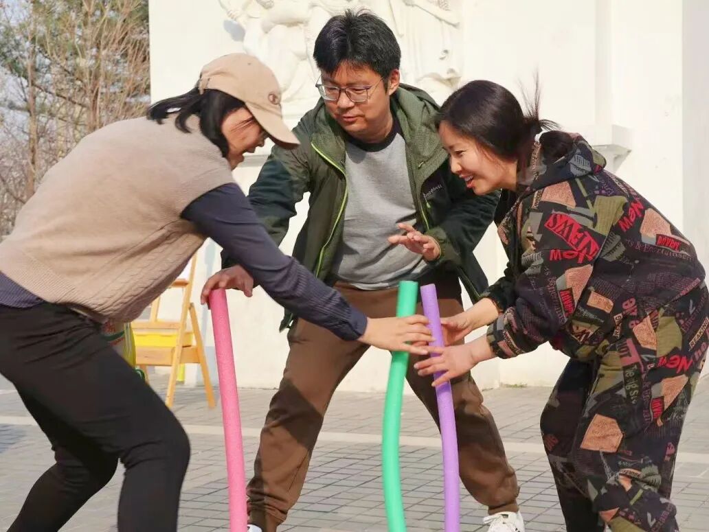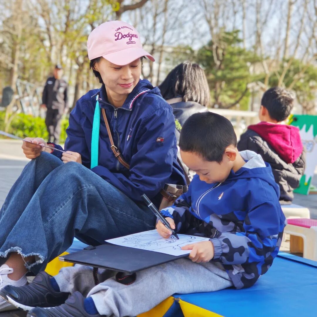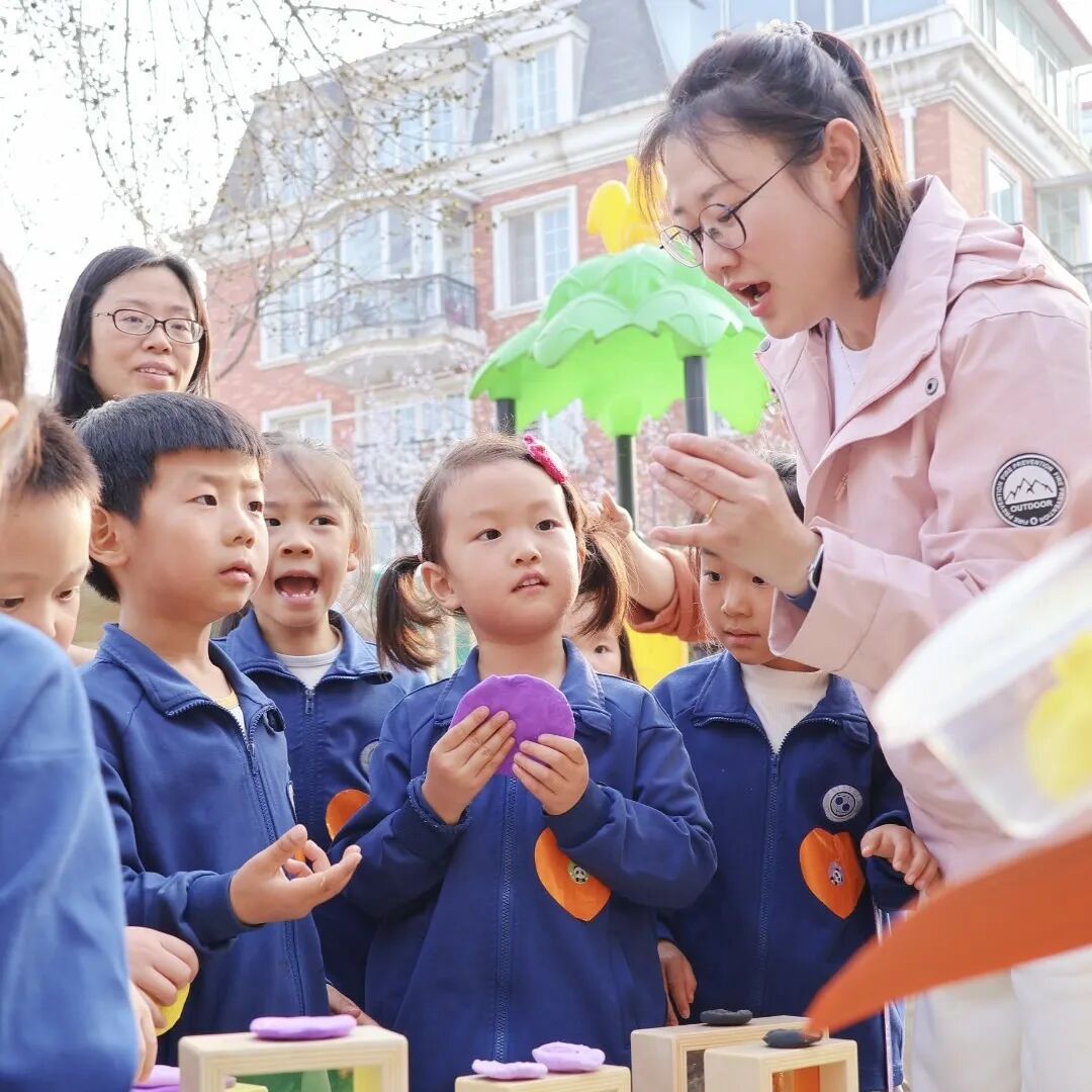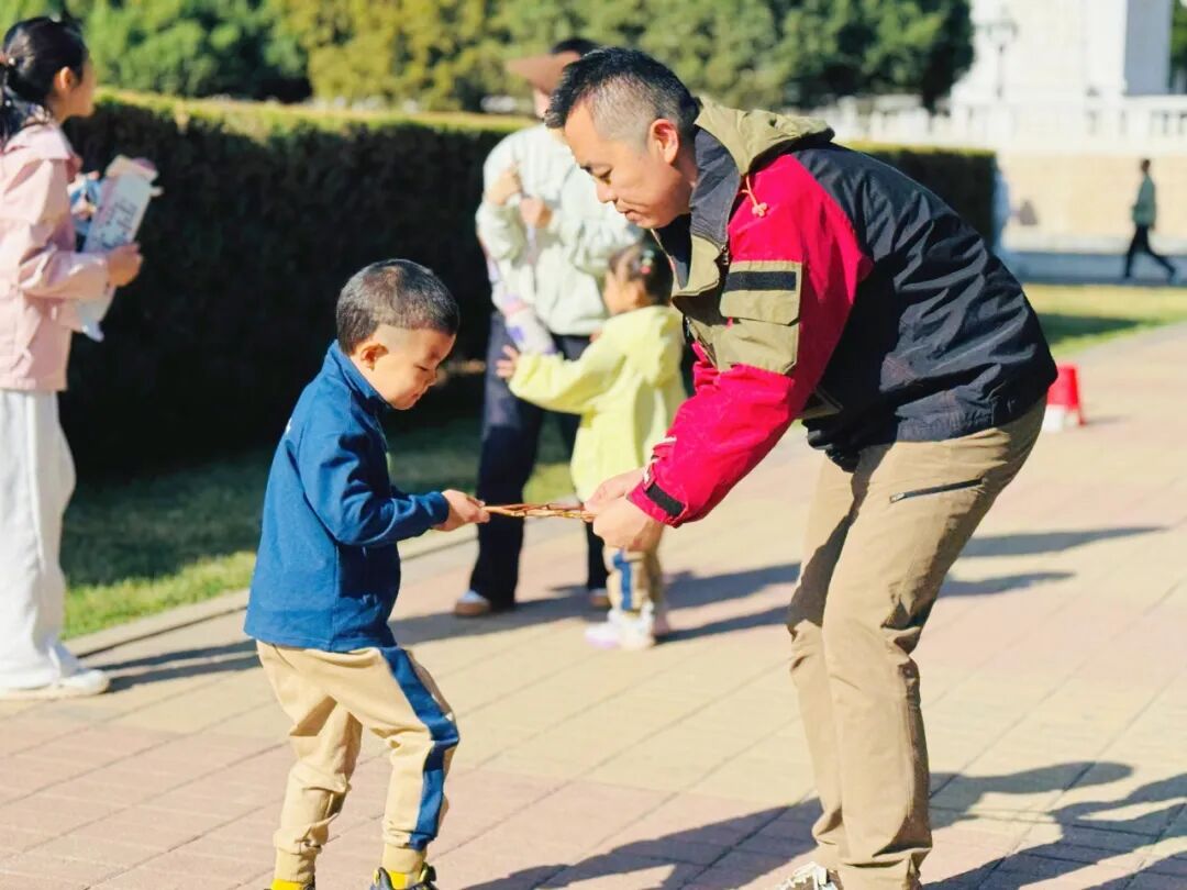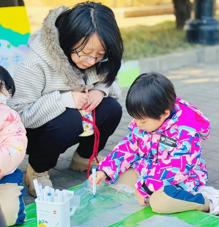 孩子们在春风里跑着、蹲着、笑着,不知不觉就锻炼了身体、认识了数字、触摸了自然。老师用这样朴素又温柔的方式,把自然的故事悄悄种进了孩子心里。而我们这些家长,也不再是站在一旁拍照的旁观者——我们和孩子一起找果壳,一起拓印,一起为成功运送一根木棍而击掌。