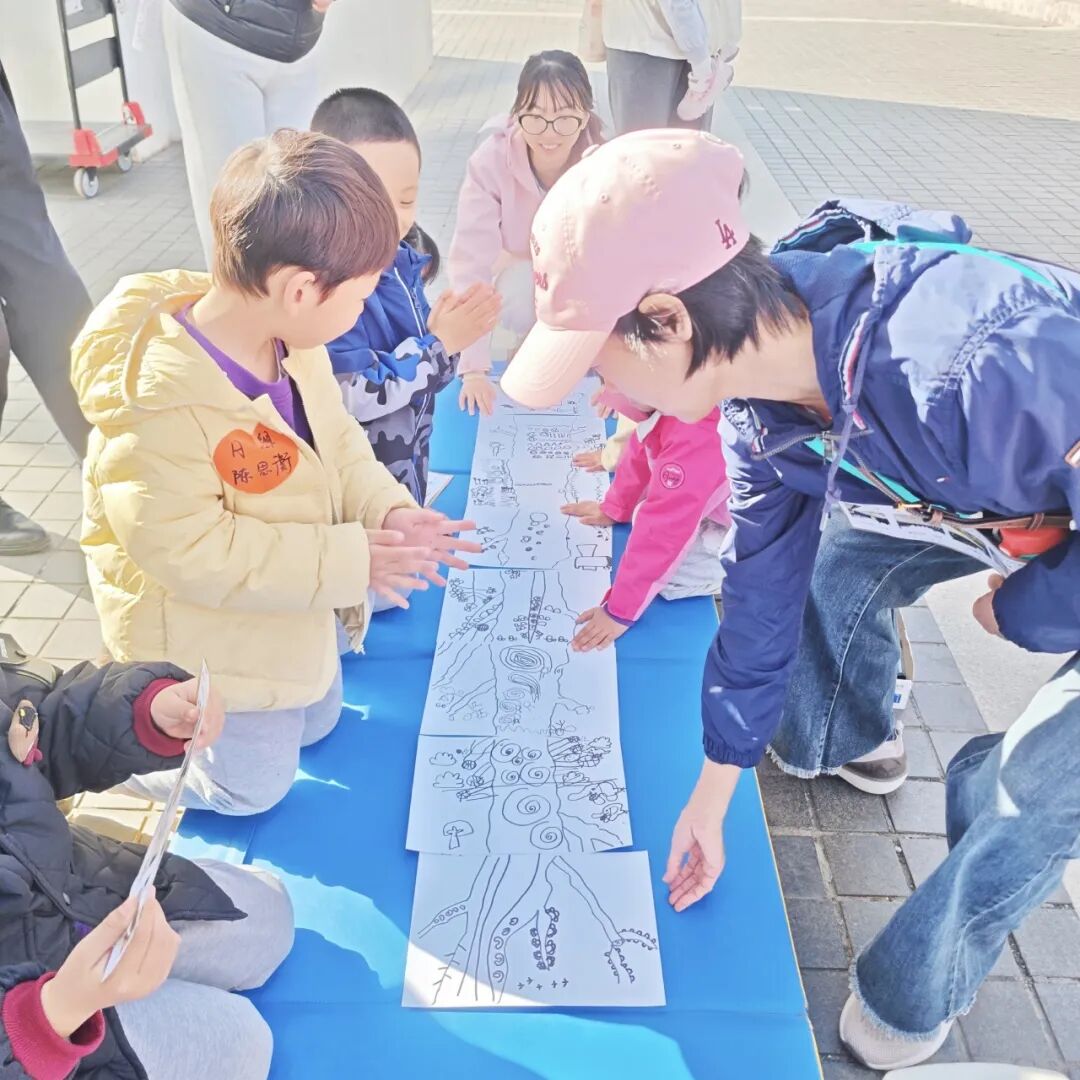 “一棵树的创意” 里,孩子们抽取树轮廓碎片创意绘画,合力拼成完整的树;“枝间拾趣” 中,亲子一组在社区步道托举树枝快速运至终点;“春野寻宝” 里,大家在社区花园按地图寻找拼图碎片,集齐拼成幼儿园场景。